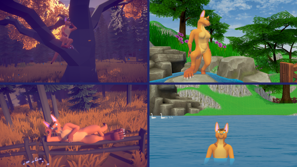 Avatar package comes with physbones configured, two material variants for with or without the hood (model can toggle between cobra hood and standard kangaroo forms), gesture expressions, and removable/togglable meshes for boobs, cheek tufts, the nose, and the pouch